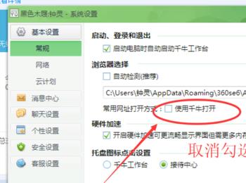 进入系统设置后,首先取消勾选千牛进入