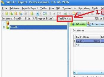 第五步: 打开SQLite Expert Professional,然后加载TaskDb.dat文件。