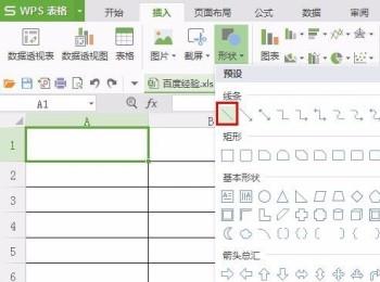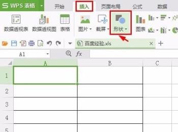2. 点击页面上端的“插入”,在其下菜单栏中找到并点击“形状”。