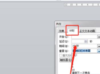 7. 然后在上方切换到“计时”选项下,重复选项下,设置为:直到幻灯片末尾”。然后点击“动画”选项,在动画窗格中,点击第一个动画效果,在弹出的窗口中,“计时”选项下,设置“开始:单击时”、“持续时间:16”、“延迟:0”。