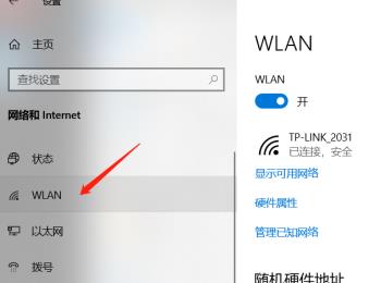 2. 在打开的设置页面,左侧点击WLAN选项