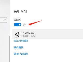 3. 在打开的右侧页面,将WLAN下方的开关打开,打开无线网络