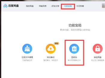 3. 登录之后,点击页面上方的功能箱选项,在打开的页面,找到回收站选项,点击。