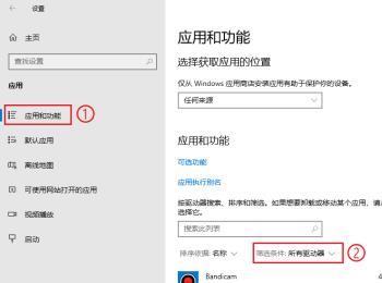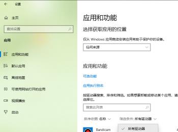 4.第四步,切换至应用设置界面后,先点击左侧的应用和功能标签,在右侧的设置区域中,点击筛选条件右侧的下拉箭头图标。