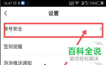 4. 第四步进入【设置】页面后,根据下图箭头所指,点击【账号安全】选项。