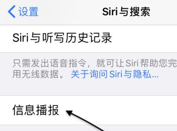 3. 如图,在打开的Siri与搜索页面,我们就可以看到「信息播报」的选项了,点击。