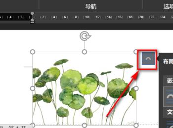 4. 在图片右侧,点击布局选项图标,在文字环绕下,选择置于文字底部。