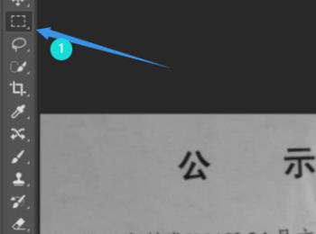 1. 打开【PS】图标,拖入要编辑的图片,点击箭头指示的工具,框出签字区域