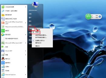 1. 首先打开电脑,进入桌面,点击左下角的开始图标。在打开的菜单中,找到“计算机”选项,右键,在打开的菜单中,选择管理选项。