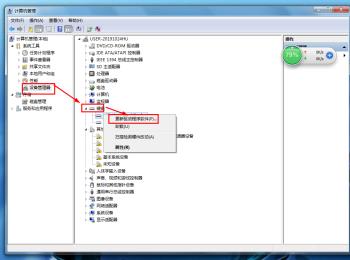 2. 点进入计算机管理页面后,依次点击设备管理器—键盘选项,展开后,在笔记本内置键盘上,右键,在打开的菜单中,选择更新驱动程序。