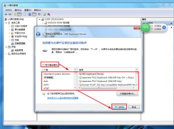 4. 如图,在弹出的窗口中,取消“显示兼容硬件”选项前面的勾选,然后在列表中,选择和原来的厂商和型号都不一样的驱动,接着依次点击下一步,直到完成。完成之后,重启电脑,我们就将笔记本电脑的内置键盘禁用了了。