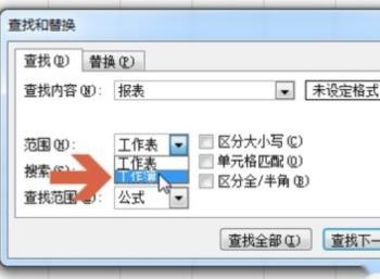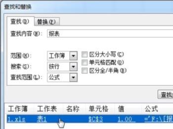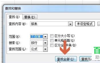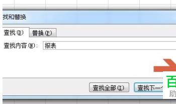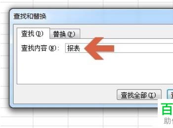 5. 在弹出的查找和替换窗口中,查找内容栏,输入链接的文件名。以“报表”为例,输入。