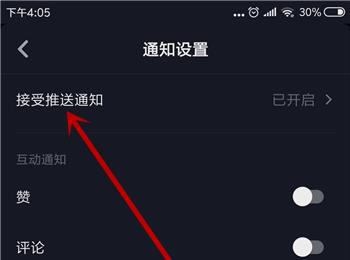 6. 我们的点击接受推送通知选项之后,就会进入到抖音的管理界面,进入到这个界面之后我们可以找到下方的通知管理选项,点击打开。
