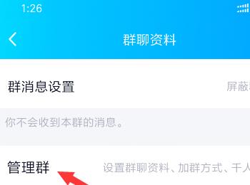 4. 进入群聊资料页面后,选择管理群选项,点击进入