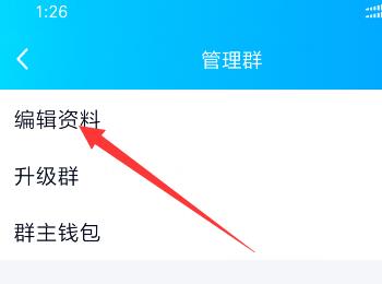 5. 进入管理群页面后,选择编辑资料选项,点击