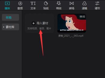 1. 首先第一步先打开电脑中的剪映软件,接着根据下图箭头所指,按照需求导入素材。