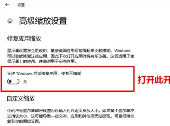 5. 看到面板中的设置项【允许 Window 尝试修复应用,使其不模糊】,我们将其下方的开关打开,如图。