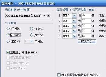 将分区形式转换成MBR形式的分区之后,再快速分区