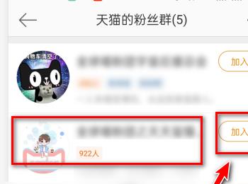 4.第四步,我们可以看到如下图所示的粉丝群页面,点击想要添加的群右边的加入群选项。