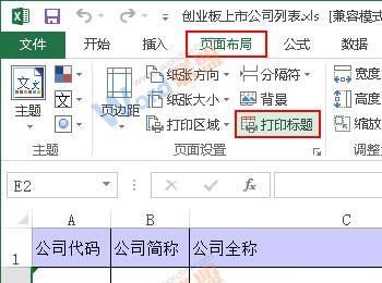 2、现在我们来修改页面设置,切换到“页面布局”选项卡,单击“页面设置”组中的“打印标题”按钮。