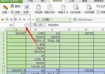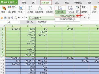 2、首先选中绿色区域,点击页面设置下面的“打印区域”,点击设置打印区域