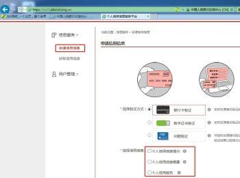 4. 登录进入页面后,点击左侧的【申请信用信息】选项,然后在右侧打开的页面,选择信用信息并完成验证即可申请