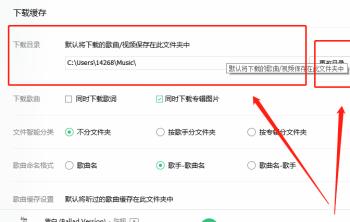 5. 如图,在设置页面,我们就可以看到目录已经修改好了,重启QQ音乐即可生效。