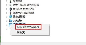 4. 最后卸载完成,鼠标右键单击【显示适配器】,在弹出的菜单栏中根据下图所示,点击【扫描检测硬件改动】选项,重新安装驱动程序软件。