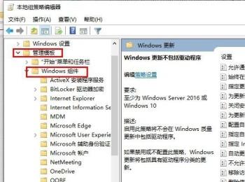 2. 第二步打开【本地组策略编辑器】窗口后,根据下图所示,先依次点击【计算机配置-管理模板-Windows组件-Windows更新】,接着找到并双击【Windows更新不包括驱动程序】选项。