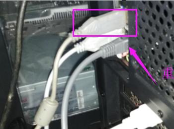 1. 根据下图箭头所指,将鼠标线拔出并重新插入。