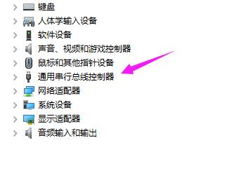 3. 第三步在右侧列表中,根据下图箭头所指,点击【通用串行总线控制器】选项。