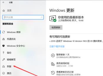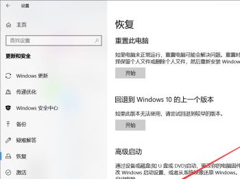 3. 第三步进入【更新和安全】页面后,根据下图箭头所指,点击左侧【恢复】选项。