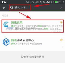 2)然后在搜索栏中输入【腾讯信用】进行搜索,接着点击进入腾讯信用的公众号,接着我们在点击【关注】该公众号。(如下图)