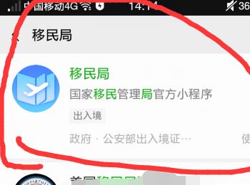 2. 第二步,接下来,请在搜索框中输入【移民局】,然后进入该程序并进行登录。