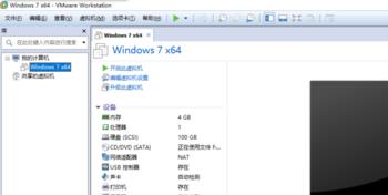 如图所示,最初装好的VM是如下图所示,默认有一个Win7系统,点击开启此虚拟机是进入虚拟机系统。