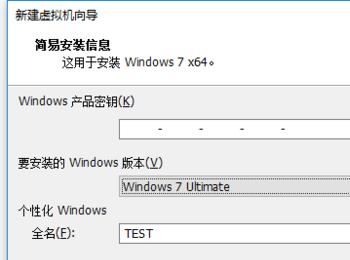接着,选择Win7的旗舰版,密钥暂时不用输入,自己起个名字,我的是TEST, 密码随意可录可不录,点击下一步。