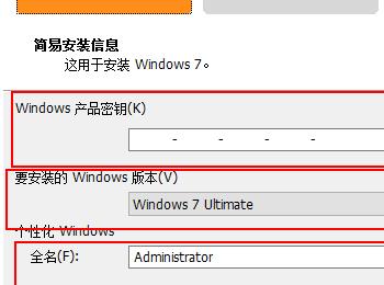 4.在弹出的界面中,输入产品密钥(问度娘,有很多)、选择版本(我这里选旗舰)、管理员密码(可选)