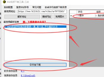 4.第四步,完成压缩包的解压后,双击或者右击打开“bilidown”程序,接着点击输入框并输入视频地址,然后点击解析地址,并选择下载的数据,接着点击页面底部的开始下载选项,直到进度条达到100%时,就说明成功下载完视频了。