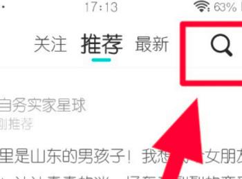 3.第三步,在下图所示的广场页面中,点击右上角箭头所指的搜索图标。