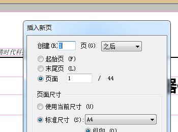 2. 如图,在弹出的插入新页窗口中,设置想要创建的页数和页面大小后,点击底部的确定按钮。
