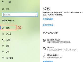 4. 在打开的网络和Internet设置页面,点击左侧的【状态】选项,然后在右侧,找到【网络和共享中心】的快捷链接,点击。