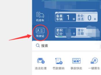 2. 登录进入主页面后,点击左上方的驾驶证选项,绑定我们将要用到的驾驶证