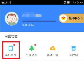 三、在个人账号界面中找到“手机备份”图标,点击它: