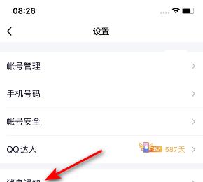 4.第四步,我们可以看到如下图所示的设置页面,点击箭头所指的消息通知选项。