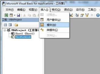 3. 此时我们点击上方功能栏中的插入选项,在下拉窗口中点击“模块”。