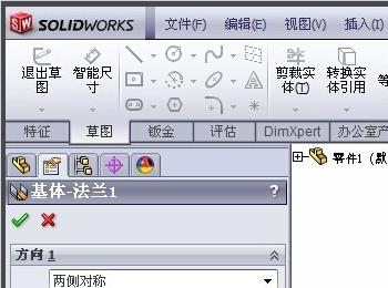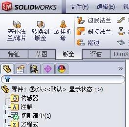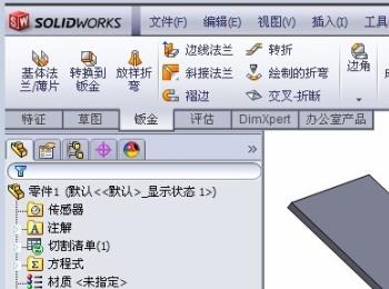 在前视基准面 建立一个钣金零件,例如:L100x50x2(t=2.0),宽度=50,内折弯半径为R0.5,折弯参数选择K因子(K=0.45),确定 (注意:只有在钣金模块的零件才可以展开,否则是无法自动展开的)