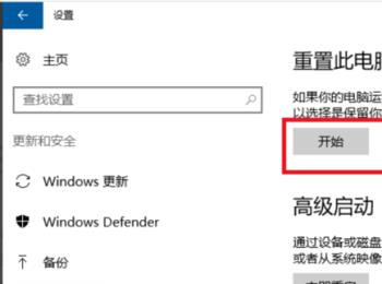 2. 在打开的“更新和安全”页面,点击左侧的“恢复”选项,然后点击右侧页面的”重置此电脑“;