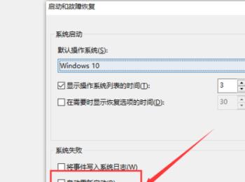 2. 第二步,来到下图所示的高级系统设置页面后,点击启动和故障恢复中的设置选项,接着取消勾选自动重新启动左边的复选框。