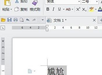 ①首先输入尴尬二字,鼠标左键按住不动选中这两个字,然后单击开始–拼音指南。