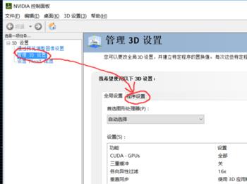 2、点击“管理3D设置”然后点击“程序管理”;